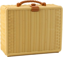 Izdržljiva košarica s poklopcem i ručkom drži sve dijelove na okupu. Idealno za putovanja, park ili posjete.