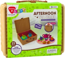 Ovaj dječji set za čaj idealan je za male domaćine i domaćice koji vole oponašati odrasle i stvarati vlastite priče. Set sadrži šalice, tanjuriće, čajnik, lončić i mnoštvo “poslastica” koje će svaku sobu pretvoriti u čajni salon ili piknik u parku. Sve je izrađeno od lagane i izdržljive plastike sa zaobljenim rubovima za sigurno držanje malim ručicama.