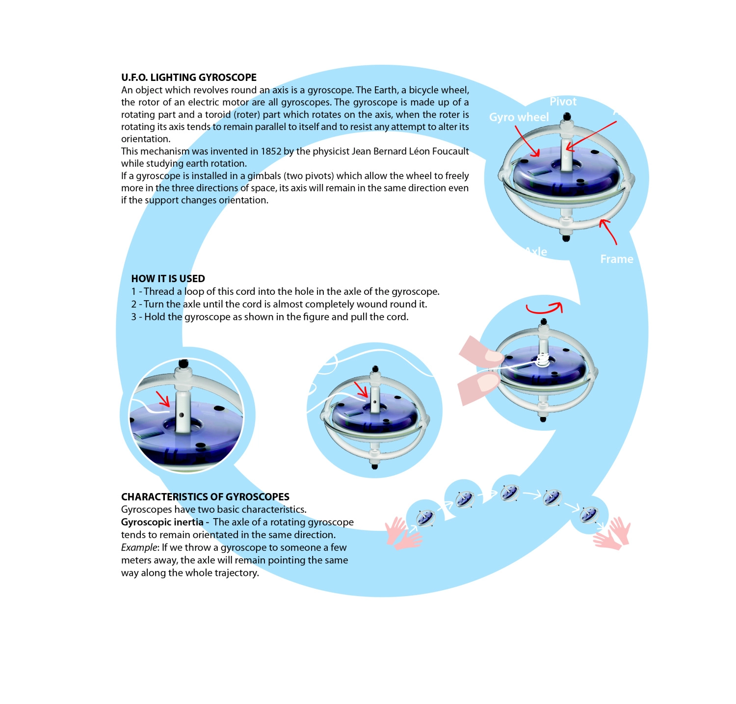 Zabavan i poučan UFO žiroskop brenda Navir praktično prikazuje principe rotacije i ravnoteže. Zahvaljujući LED osvijetljenom rotoru efektan je u mraku, lako se upravlja priloženim kabelom i prikladan je za djecu od 6 godina.