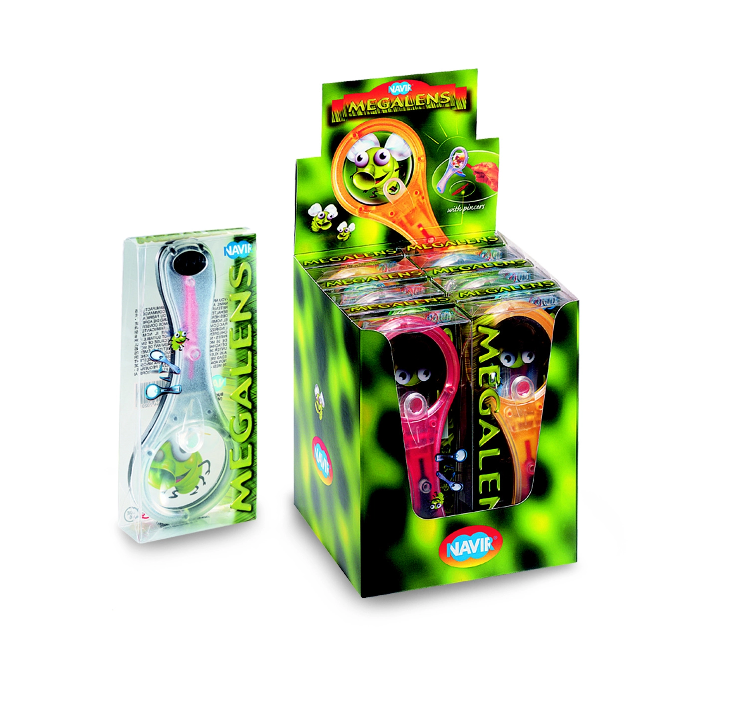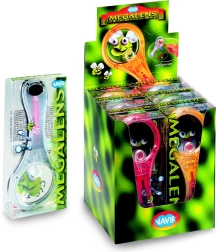 Praktično povećalo od ekološke ABS plastike s ugrađenom drugom lećom idealno je za male istraživače od 6 godina. Zahvaljujući dršci koja se otvara poput kompasa, povećalo se može udobno položiti na stol i koristiti bez držanja u ruci. Unutar drške nalazi se i odvojiva pinceta za jednostavno rukovanje sitnim predmetima. Velika leća 60 mm, mala leća 13 mm, povećanje 3× i 7×, ekološki materijal, mješavina boja.