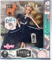 Otkrijte čaroliju mode i mašte s lutkom Emi od WOOPIE. Prekrasna lutka s krunom i dugom plavom kosom odjevena je u sjajnu svečanu haljinu s mašnom i til rubom. U pakiranju se nalazi i preslatki psić – vjerni pratitelj za svakodnevnu igru. Zahvaljujući pažnji prema detaljima i modernom dizajnu, igra je privlačna i realistična.