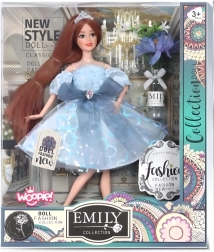 Elegantna lutka Emi u nebeskoplavoj haljini s nježnim tilom i mašnom očarat će svako dijete. Ima dugu smeđu kosu, stylish krunu, pokretne udove i izrađena je od sigurnih, izdržljivih materijala. Sjajan poklon od 3 godine naviše u estetskom pakiranju.