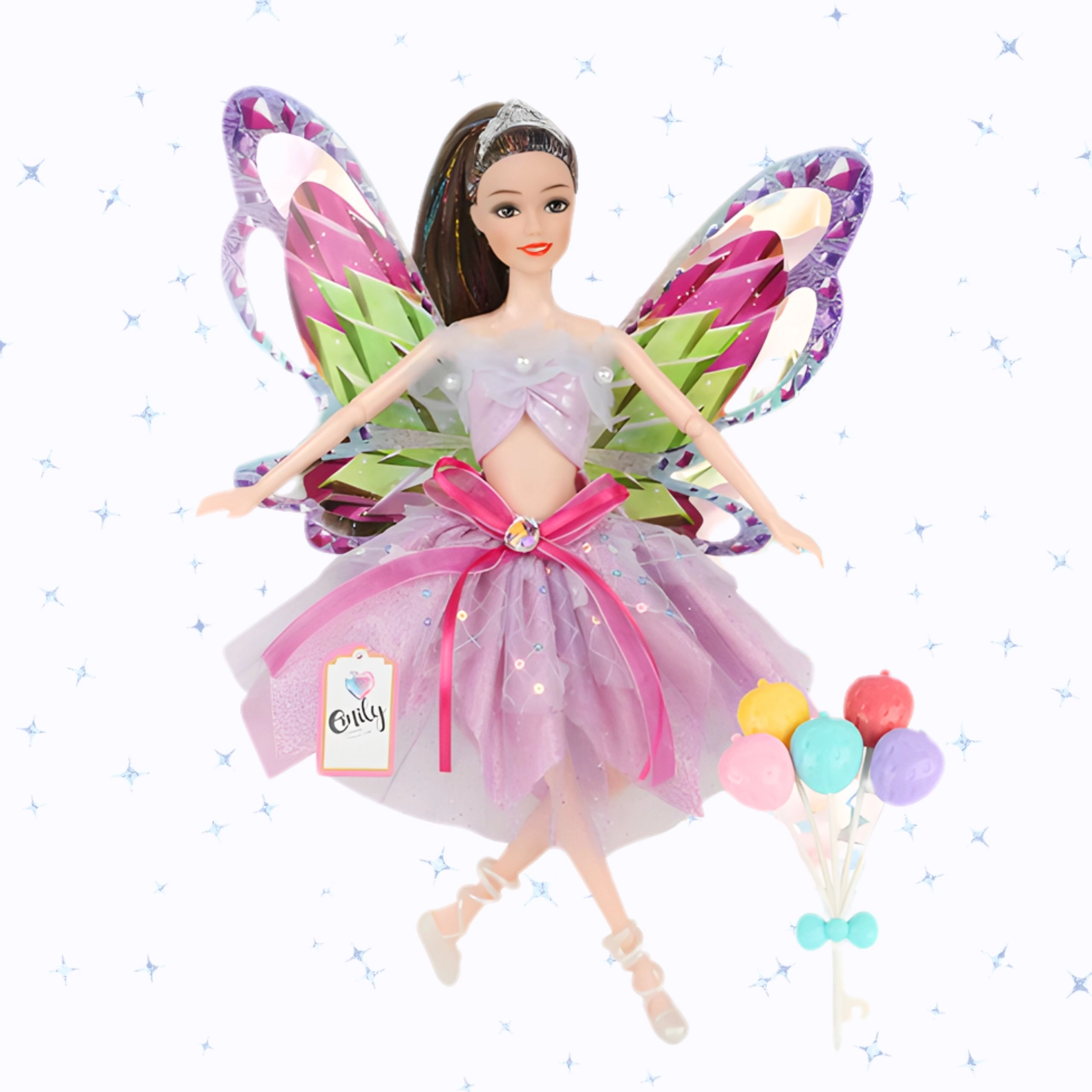 lutka Emi u vilinskom kostimu, 2 ukosnice, set šarenih balona
