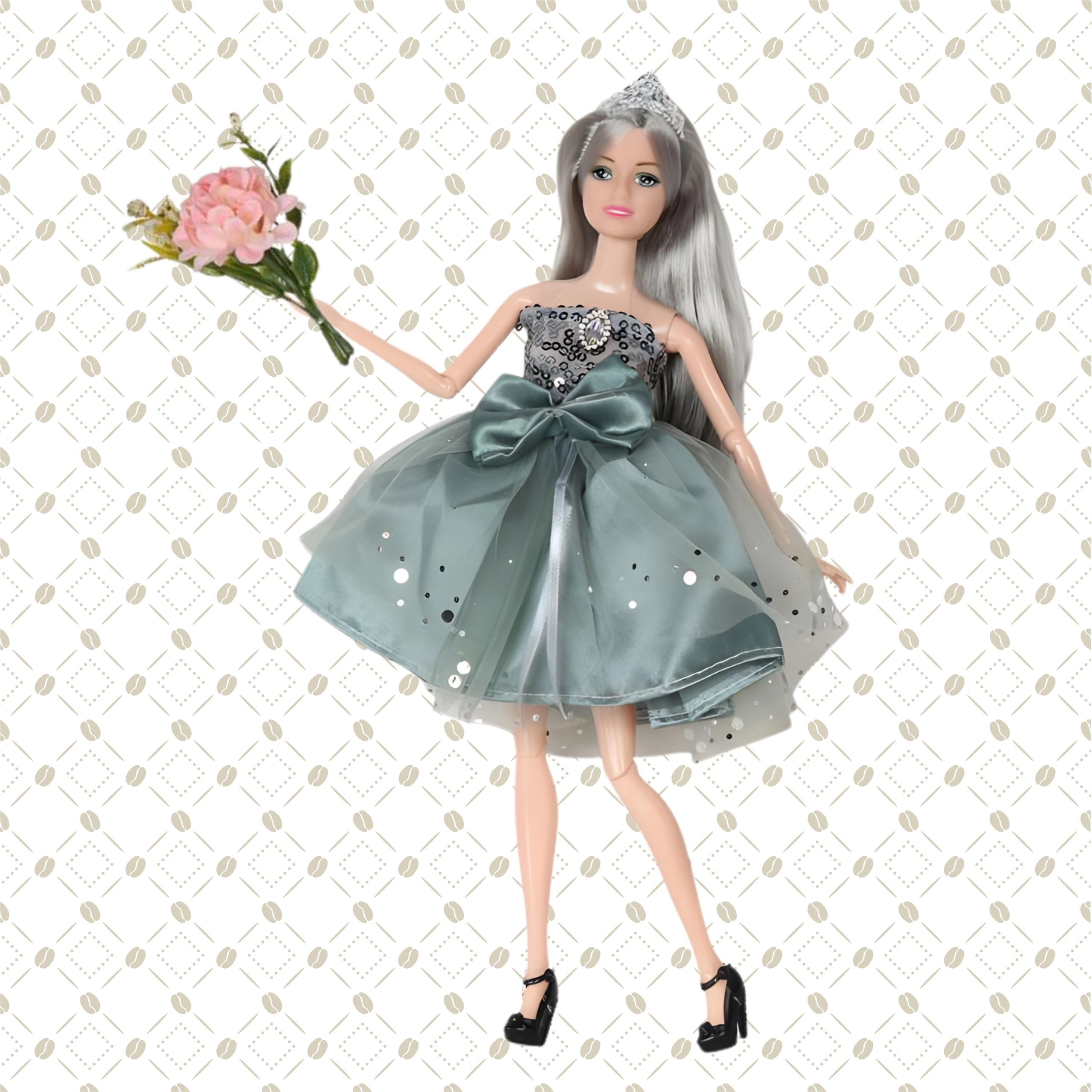 - Bogati dodaci: kruna, cipelice i buket za savršen izgled.