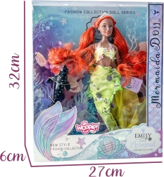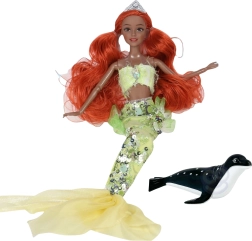 Otkrijte čaroliju podmorskog svijeta s lutkom EMI Mermaid od WOOPIE ROYAL. Lutka ima dugu valovitu crvenu kosu, svjetlucavi morski rep s tilenom perajom i stilski top u pastelnim bojama. Dio seta je i presladak tuljan te tematski dodaci za igru oceanskih priča. Idealan poklon za djecu od 3 godine.