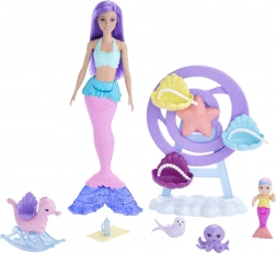 Prenesite djecu u bajkoviti ocean, gdje Barbie kao brižna morska vila prati bebu i morske stvorove u razigranim pustolovinama. Set u pastelnim bojama potiče kreativno pripovijedanje i razvija finu motoriku i maštu.