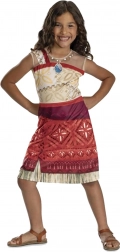 Ovaj licencirani Disguise kostim nadahnut Disneyjevim filmom omogućuje djeci da se odmah užive u ulogu hrabre Vaiane. Haljina je u atraktivnoj crveno‑bež izvedbi s otiskom plemenskih motiva, lažnim kosim pojasom i resastim porubom. Integrirani tisak ogrlice upotpunjuje cjelokupni izgled bez potrebe za dodatnim modnim dodacima.
