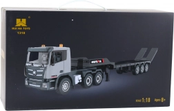 Detaljno izrađena kabina i duga platforma s tri osovine te preklopnim rampama za ukrcaj građevinskih strojeva čine model atraktivnim i funkcionalnim RC setom.