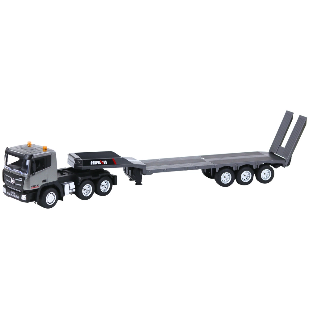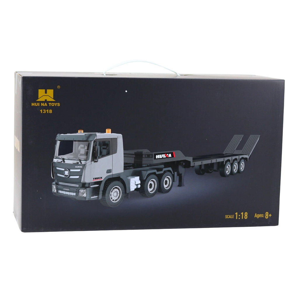 Uživajte u realističnom prijevozu strojeva s RC setom HUI NA: detaljni sivi tegljač i niskopodna poluprikolica s preklopnim rampama vjerno oponašaju stvarnu transportnu tehniku. Stabilno podvozje, mnogo kotača i precizno upravljanje osiguravaju glatko manevriranje i dugi vijek trajanja.