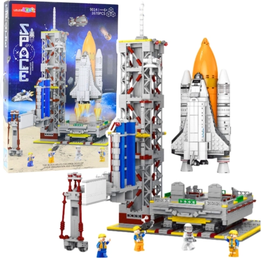 Svemirski konstrukcijski set donosi sve za autentičnu scenu prije lansiranja rakete. Shuttle ima precizno izrađeni spremnik goriva, motore, kormila i pojačivačke stupnjeve. Lansirni toranj raspolaže pokretnim platformama i izvlačnim rukama, što pojačava realističnost modela. Idealno kao edukativna igračka i kolekcionarski eksponat.
