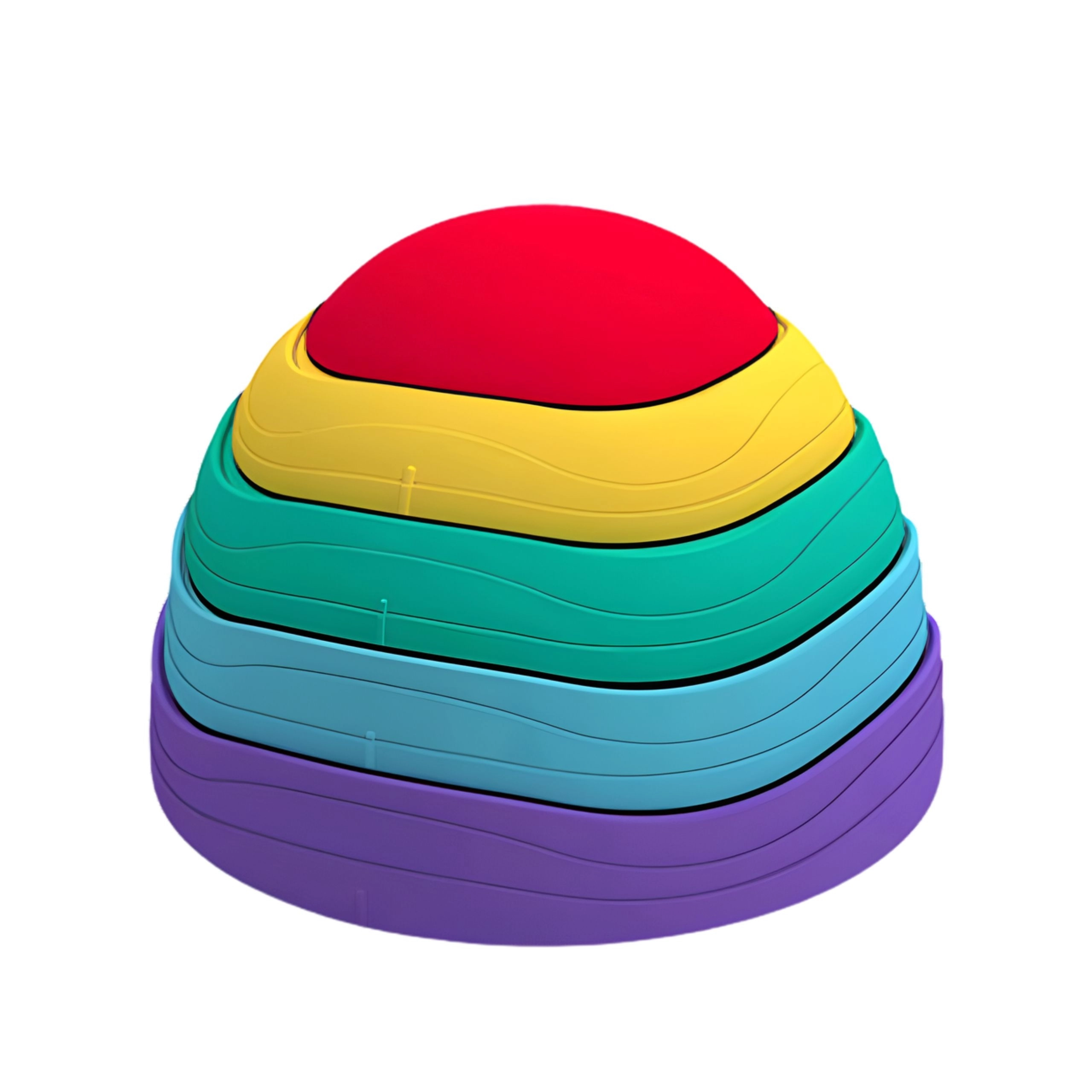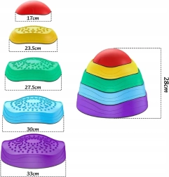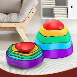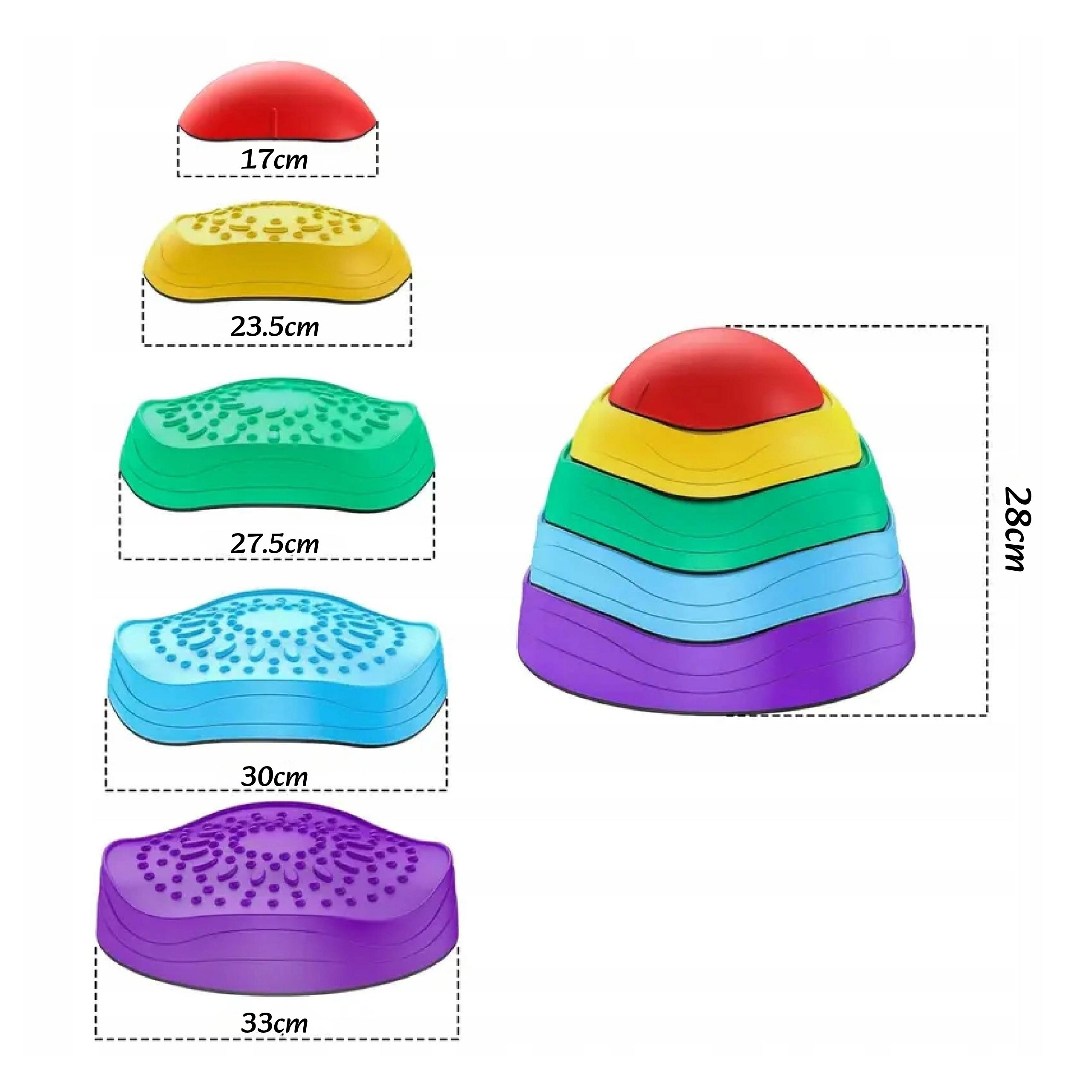 Zahvaljujući protukliznoj podlozi, kamenčići ostaju stabilni tijekom igre, a teksturirana površina stimulira osjetilnu percepciju stopala i dlanova. Složivi dizajn štedi prostor pri spremanju, a žive boje prirodno pozivaju na kretanje.
