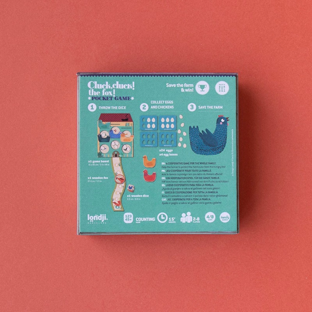 Kompaktna i vizualno privlačna igra „Spasite kokoši” brenda LONDJI uvlači igrače u svijet kokošinjca, gdje treba munjevito reagirati i taktičkim odlukama štititi jaja od lisice. Zahvaljujući džepnom formatu, savršeno stane u ruksak ili torbicu – idealno za izlete, godišnji odmor ili čekanje kod liječnika.