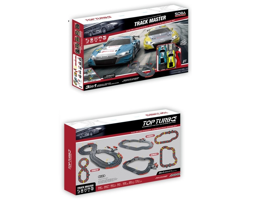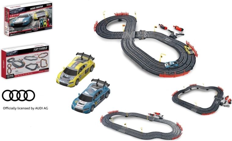 Uživajte u kućnim utrkama s licenciranom autostazom AUDI duljine 320 cm. Brza montaža, USB napajanje za jednostavan rad i kvalitetna izrada od plastike i metala osiguravaju sate zabave za djecu od 8 godina nadalje.