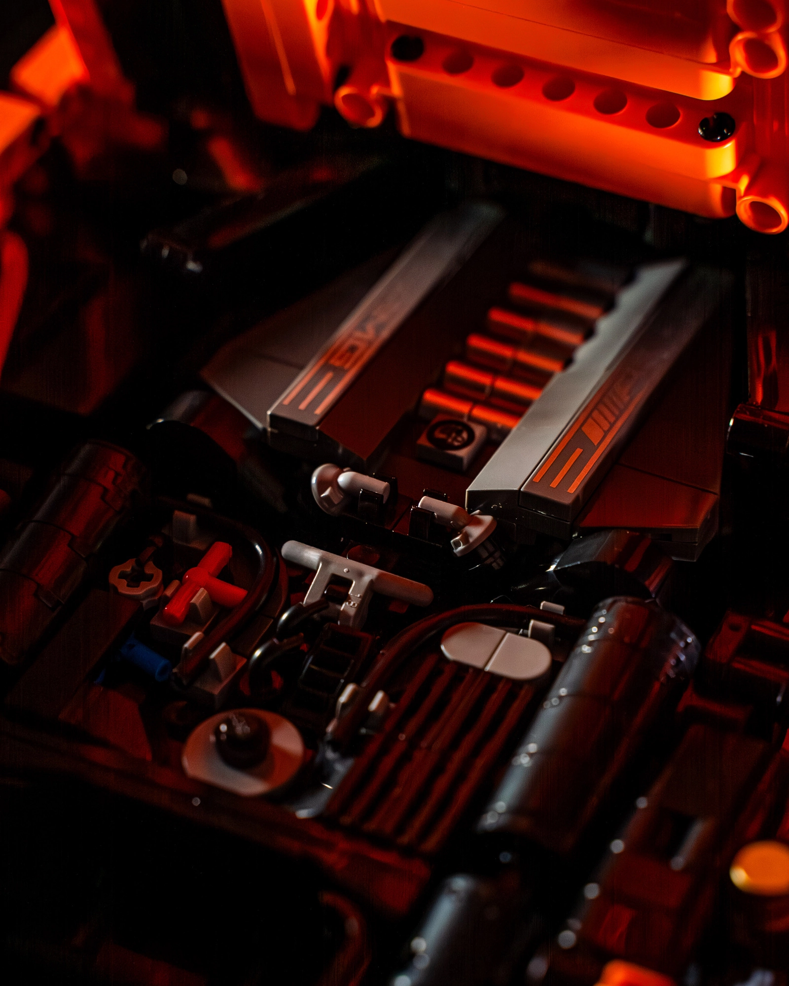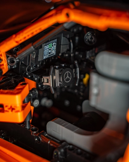Tehnička oprema oduševit će svakog zaljubljenika u inženjerstvo: 8-stupanjski mjenjač s realnim prijenosom pokreta, neovisni prednji i stražnji ovjes s podesivim amortizerima, povezano upravljanje s volanom i vrata koja se otvaraju i blokiraju. U kompletu je i pneumatski sustav za podizanje vozila kao pri pravom pit‑stopu te posebno pribor za zamjenu kotača.
