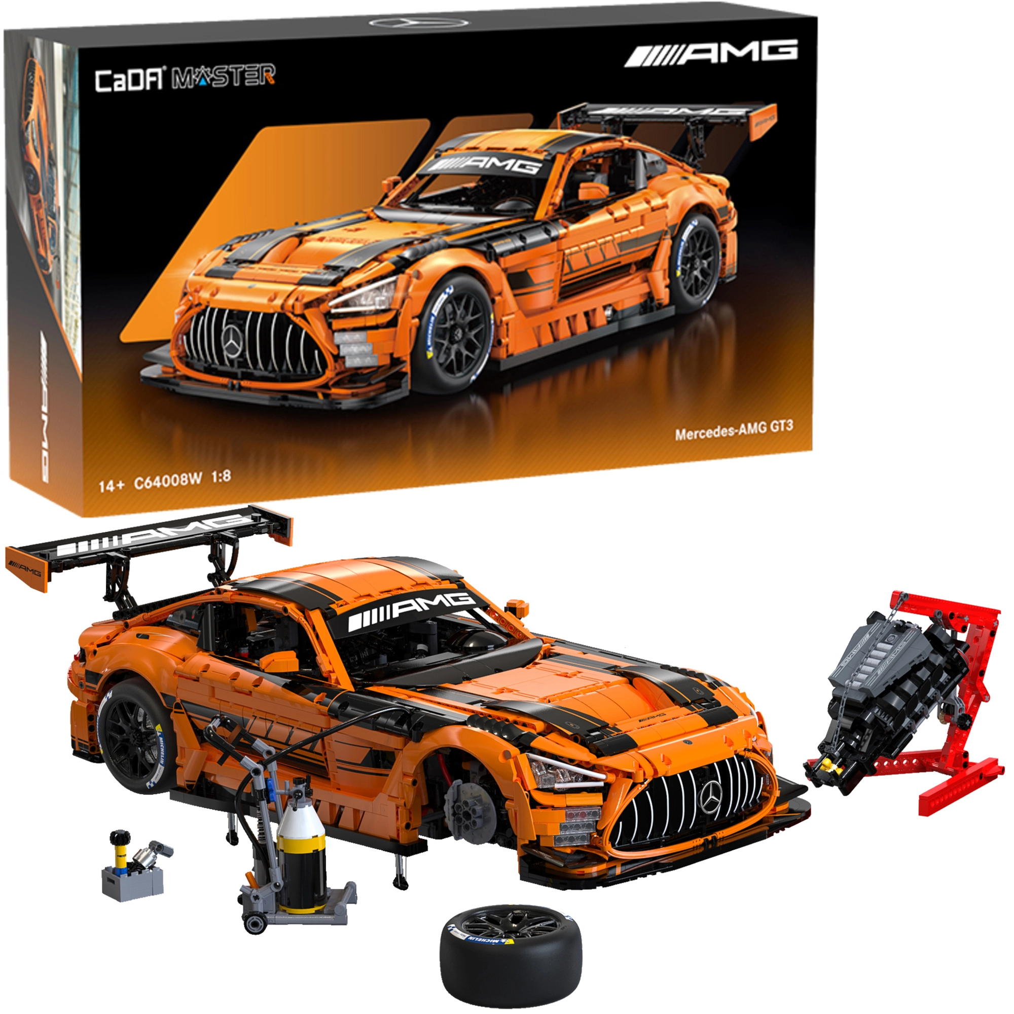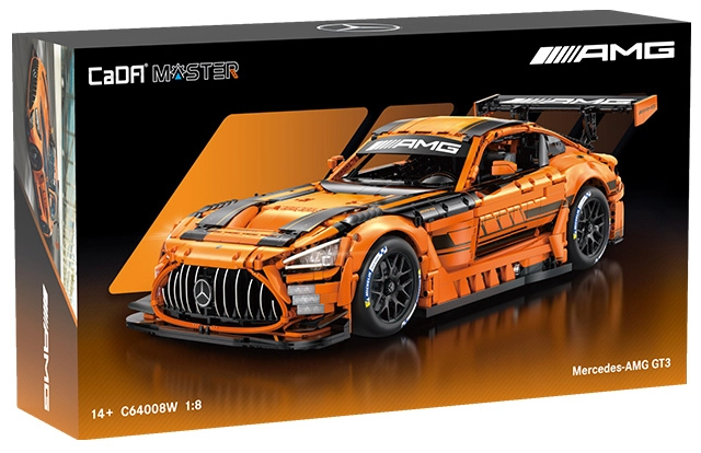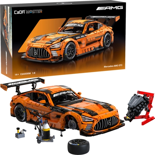 Sastavite kultni trkaći automobil MERCEDES-AMG GT3 u mjerilu 1:8 iz premium serije CaDA Master. Ovaj detaljan model s 5466 dijelova nudi 8-stupanjski mjenjač, neovisno i podesivo ovjesenje, upravljanje prednjim kotačima, vrata koja se otvaraju i zaključavaju, modularni motor i poklopac motora te dodatno LED osvjetljenje. Prava poslastica je pneumatska dizalica za simulaciju pit-stopa i zamjene kotača – maksimalni tehnički doživljaj pri gradnji i izlaganju.