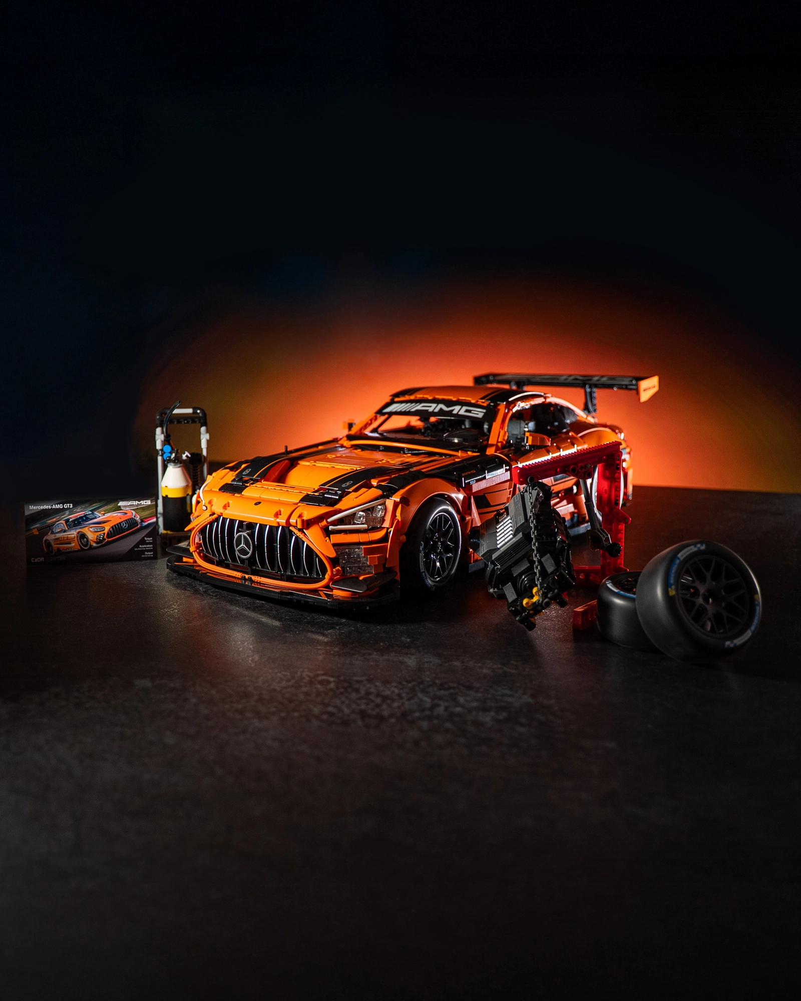 Više LED modula naglašava trkaći izgled licenciranog MERCEDES-AMG GT3 s preciznim otiscima i realističnim aerodinamičnim elementima.
