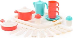 Čajni set za troje s pladnjem Nastenka odličan je izbor za male domaćice i domaćine. Zahvaljujući kompletnom priboru, djeca mogu pripremiti čajnu okrjepu za sebe i prijatelje te razvijati maštu, komunikaciju i finu motoriku.