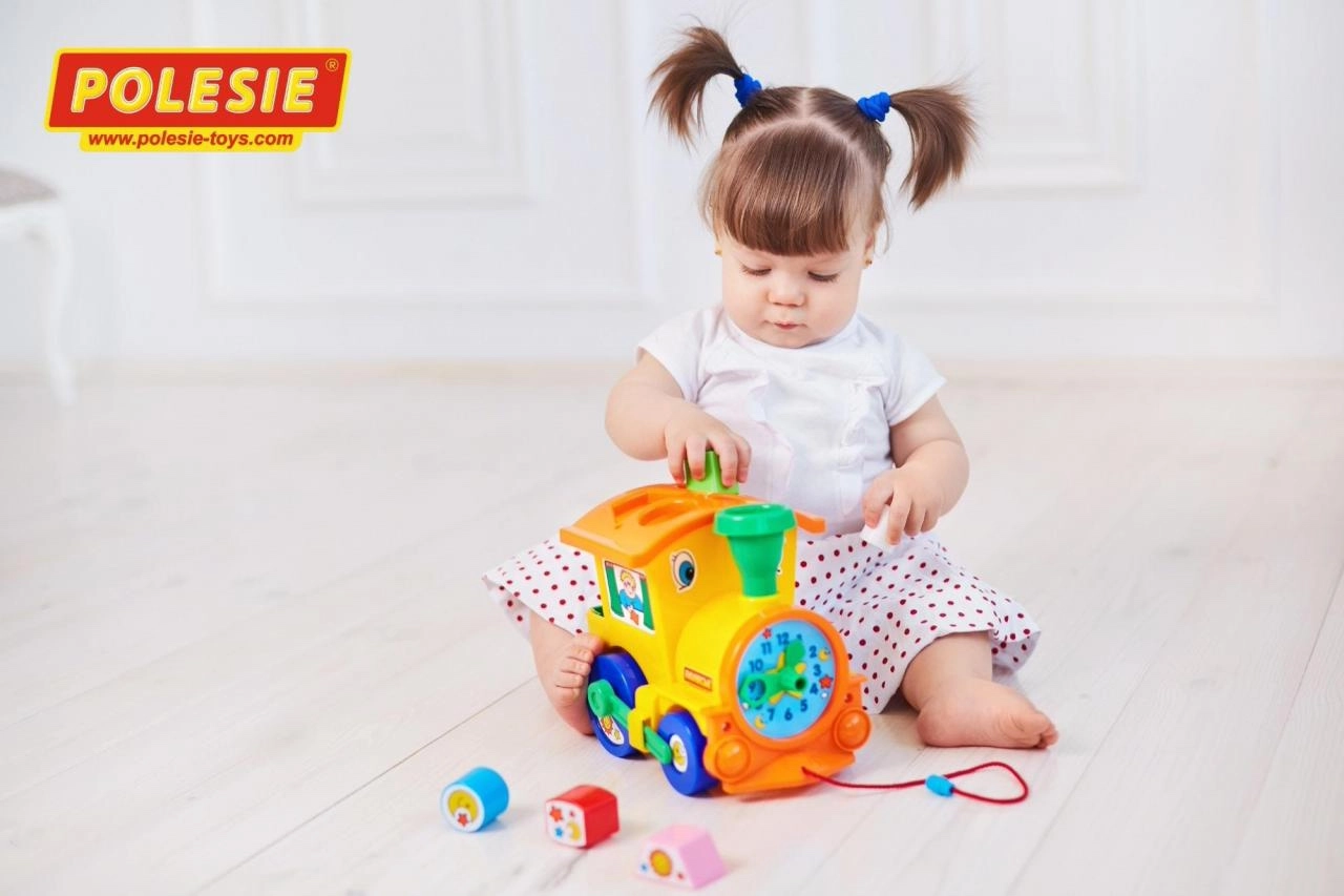 Lokomotiva je izrađena od izdržljive plastike, ima glatke rubove i ugodne boje. Dijete može lako povlačiti lokomotivu za uzicu i umetati oblike na odgovarajuća mjesta. Sat s kazaljkama podržava osnovnu orijentaciju u vremenu kroz igru.