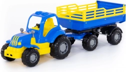 Traktor s prikolicom Wader Macher kvalitetna je plastična igračka dizajnirana za male vozače. Velika kola, lako upravljiva prikolica i sigurna izrada bez oštrih rubova omogućuju djeci prevoziti manje igračke ili pijesak i razvijati maštu u igri farme.