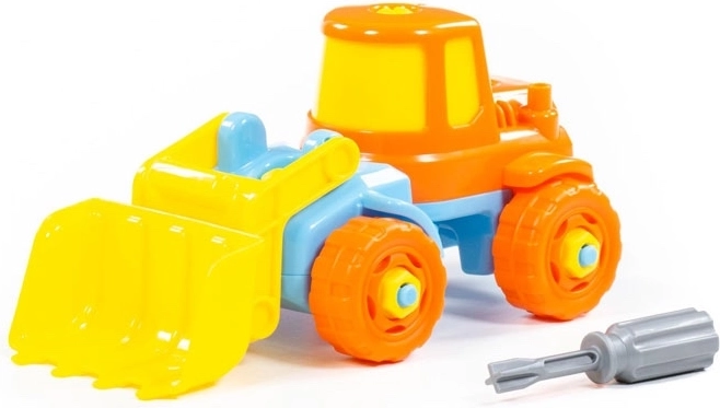 Dio pakiranja je jednostavan dječji odvijač – djeca mogu bager rastavljati i ponovno sastavljati, čime vježbaju finu motoriku i strpljenje.