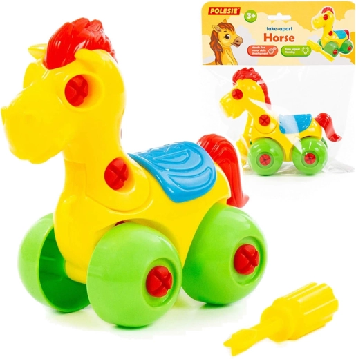 Ovaj šareni vijčani konjić na kotačićima odličan je izbor za djecu koja vole otkrivati kako stvari funkcioniraju. Zahvaljujući priloženom odvijaču, pojedine dijelove lako je rastaviti i ponovno sastaviti, što razvija strpljenje i vještinu.