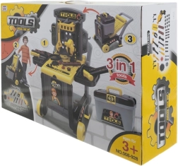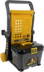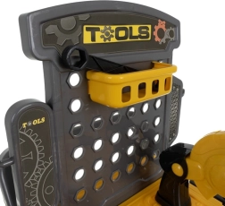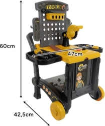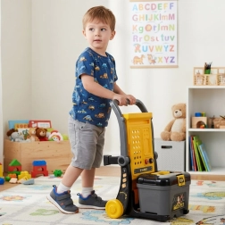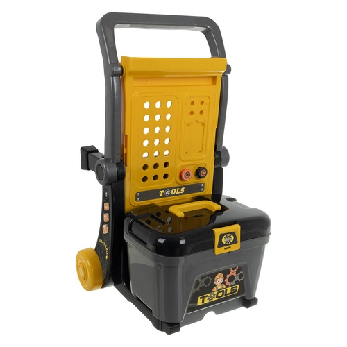 Zahvaljujući organizatoru i koferu svaki dio ima svoje mjesto, perforirana ploča olakšava vješanje alata, a robusni kotači osiguravaju lako premještanje po sobi. Set je idealan kao poklon za djecu od 3 godine – siguran, zabavan i trajno poticajan.