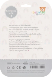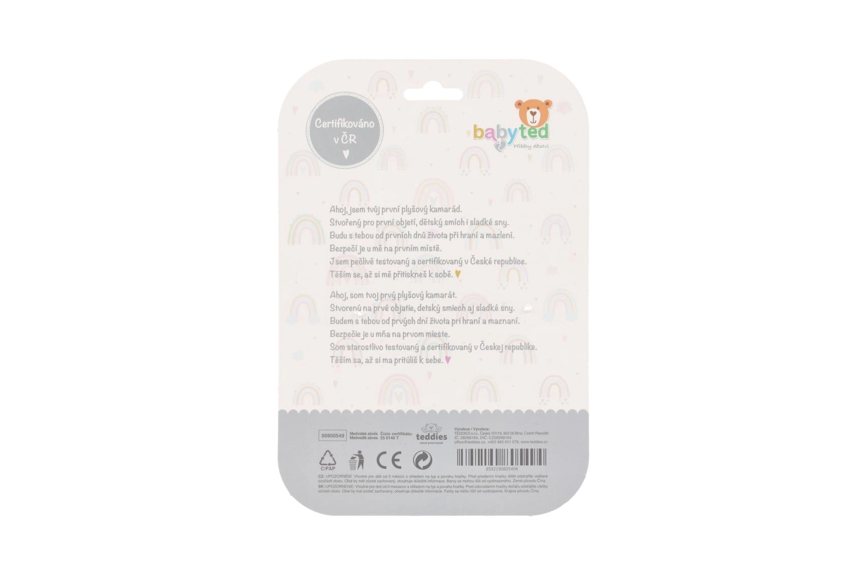 Na krajevima šapica nalaze se sigurni plastični oblici – zvjezdica i cvjetić – koji podupiru finu motoriku, taktilnu percepciju i prve hvate. Kontrastni uzorci i ugodne boje stimuliraju vid i čine igračku vizualno poticajnom.