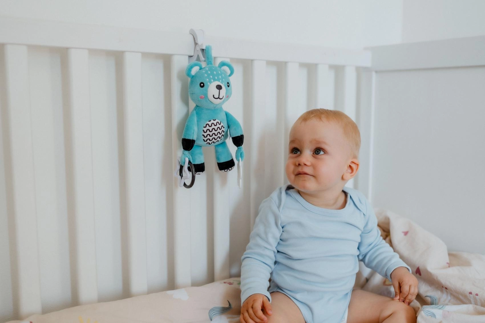 Brzo pričvršćivanje na kolica, krevetić, autosjedalicu ili baby gym. Igračka uvijek ostaje pri ruci i na sigurnoj udaljenosti.