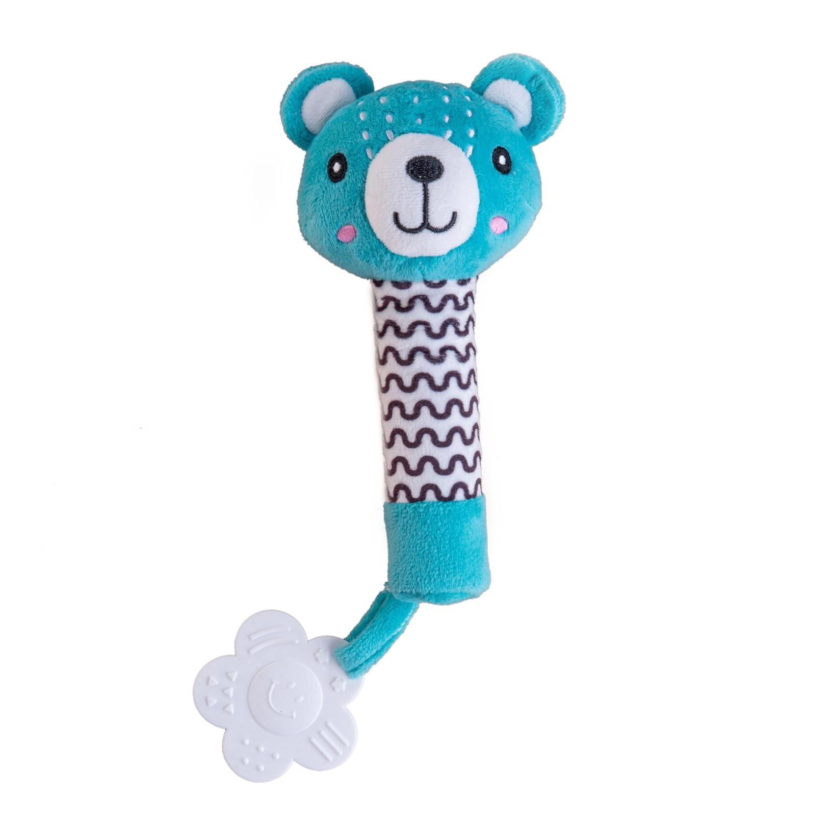 Ova mekana zviždaljka s grickalicom u obliku medvjedića donosi bebama i umirenje i zabavu u jednom. Dugi i tanki držač lako se hvata, nježan zvižduk potiče sluh, a grickalica u obliku cvjetića pomaže pri nicanju prvih zubića. Mekani pliš je ugodan na dodir i prikladan već od rođenja.