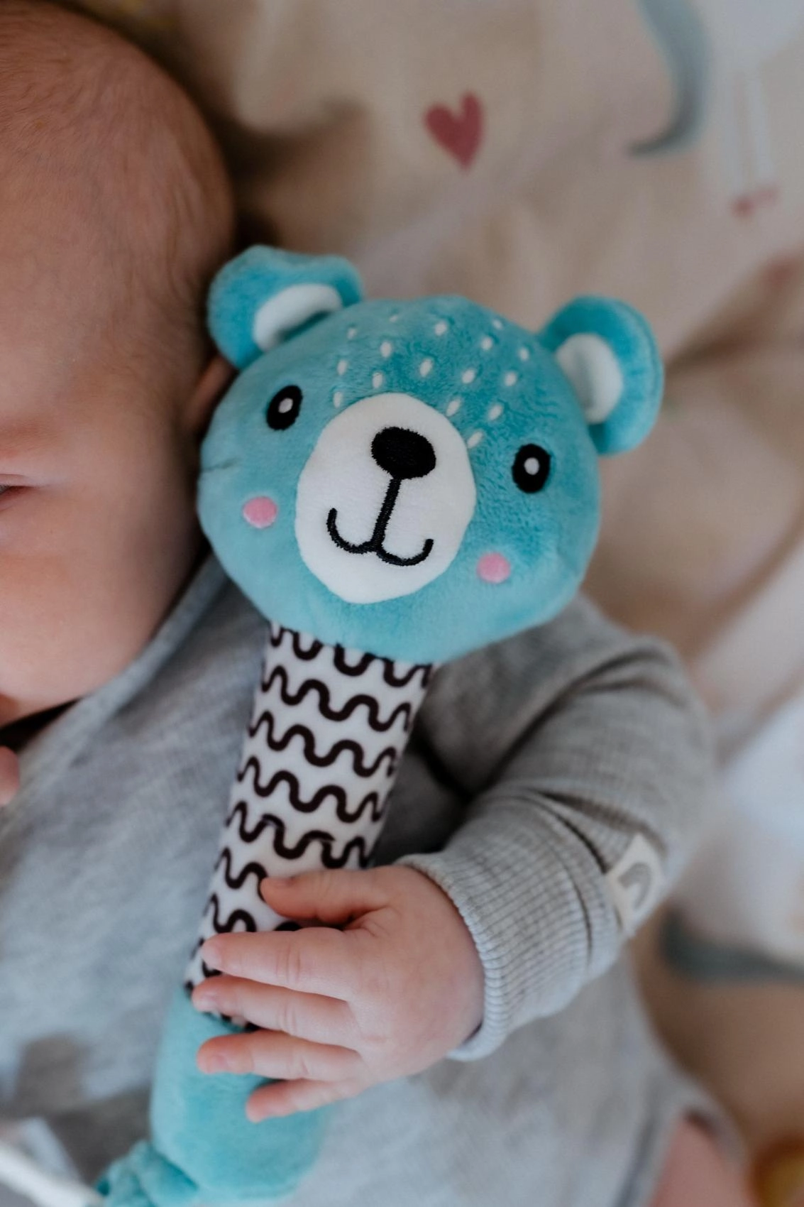 Zahvaljujući kontrastnim uzorcima na tjelu medvjedića, igračka podržava vizualnu percepciju i koncentraciju. Sigurnost osiguravaju pažljiva izrada, certificiranje u RH i materijali nježni prema dječjoj koži.