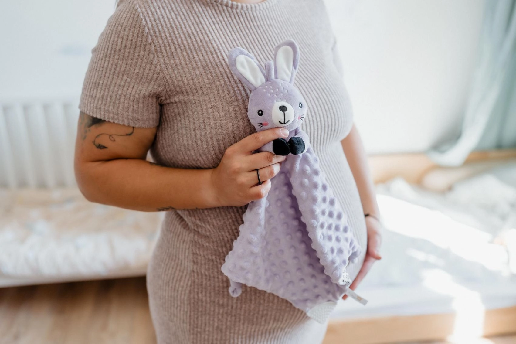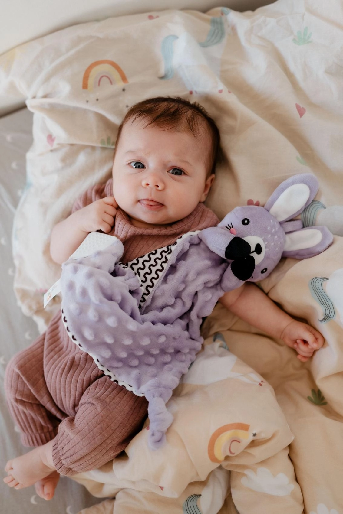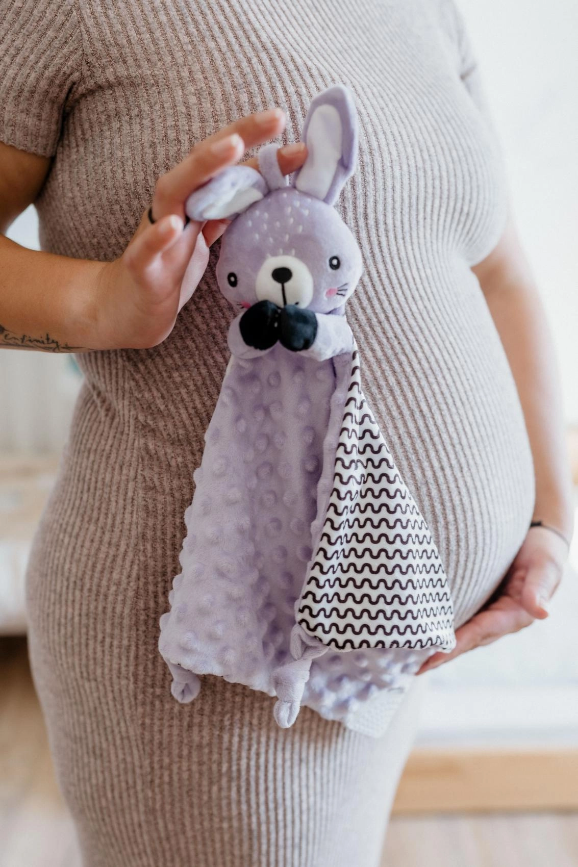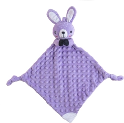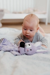 Ova mekana plišana mazilica za uspavljivanje u obliku zečića idealan je prvi prijatelj za bebe. Minky materijal s utisnutim 3D točkicama pruža ugodnu taktilnu stimulaciju, umiruje i pomaže stvoriti osjećaj sigurnosti tijekom sna i preko dana. Zahvaljujući laganoj konstrukciji lako ju hvataju i malene dječje ručice.