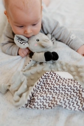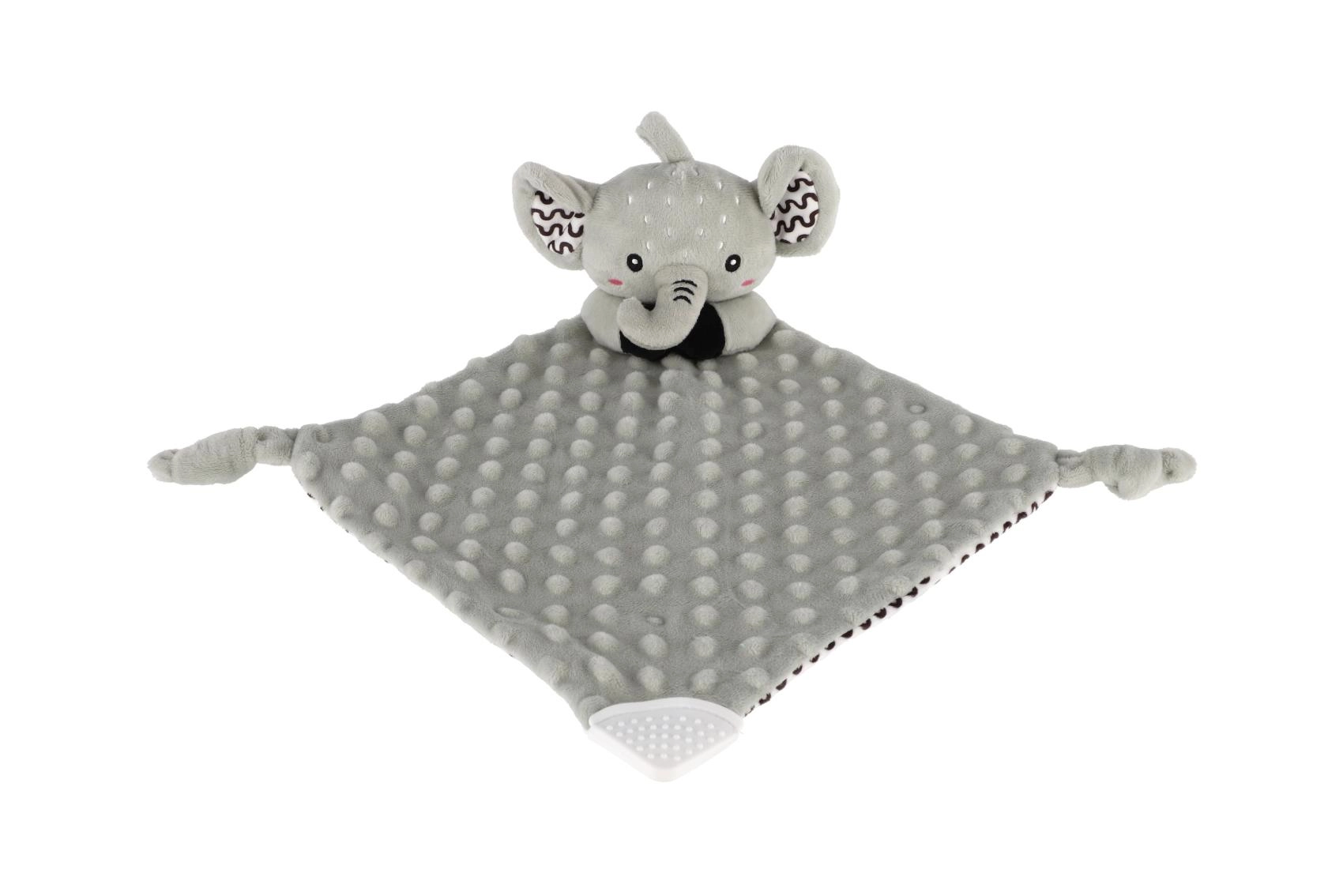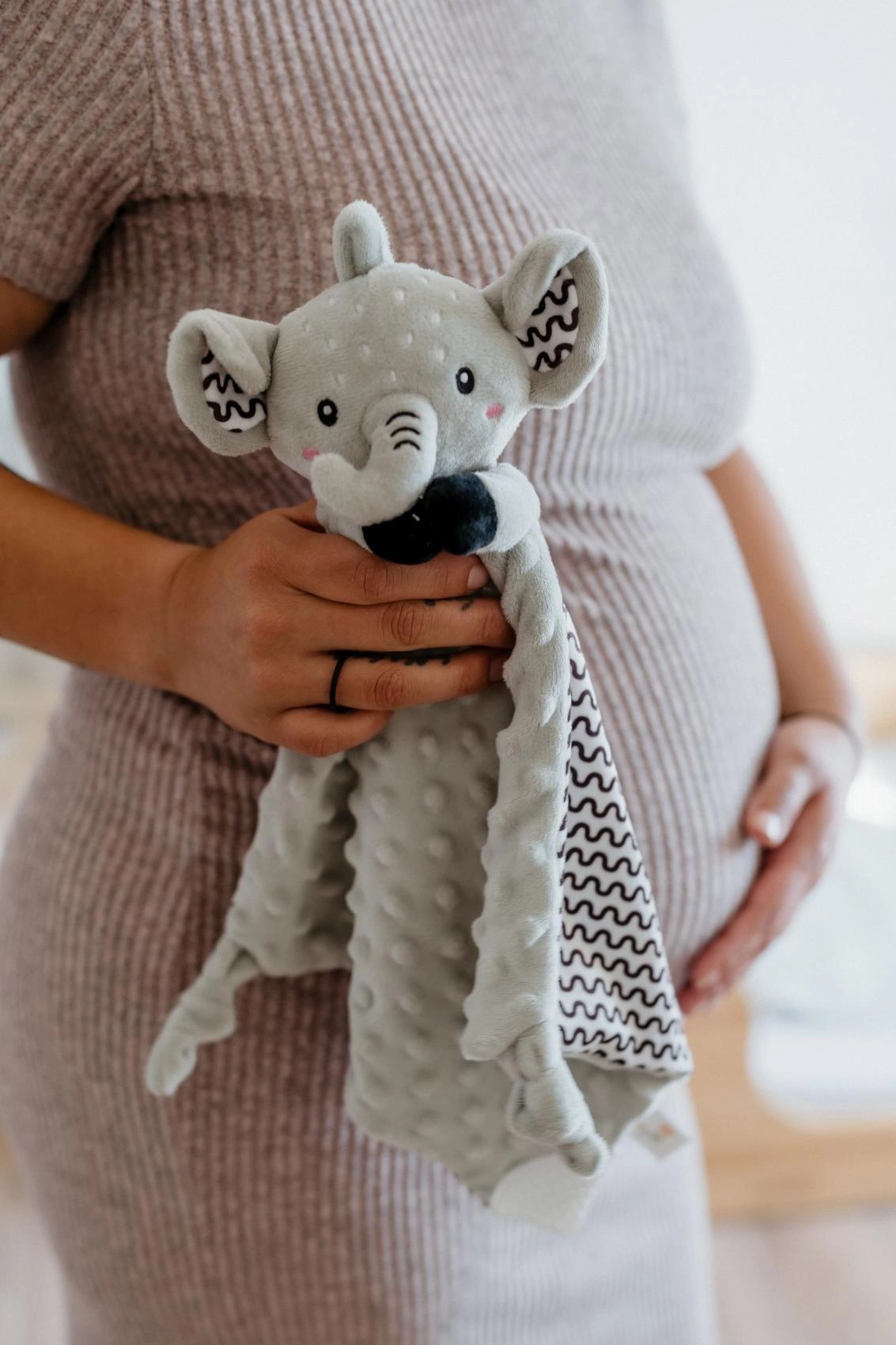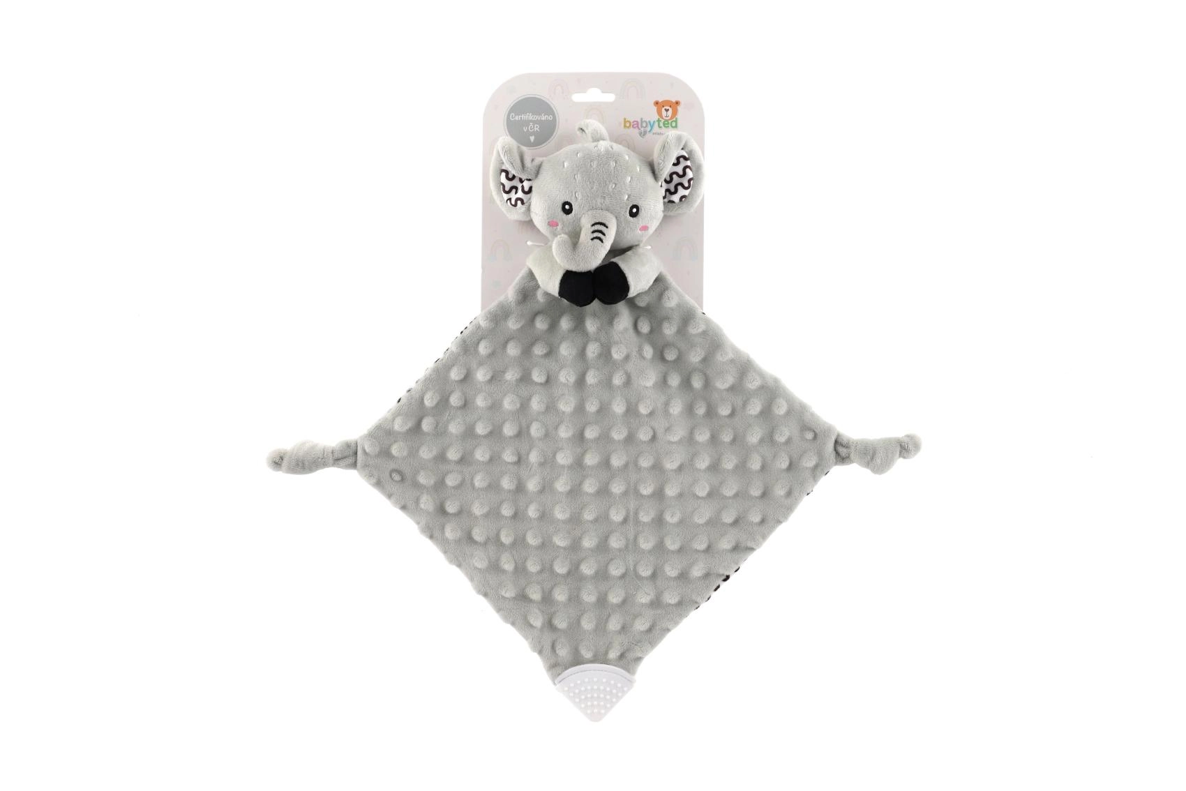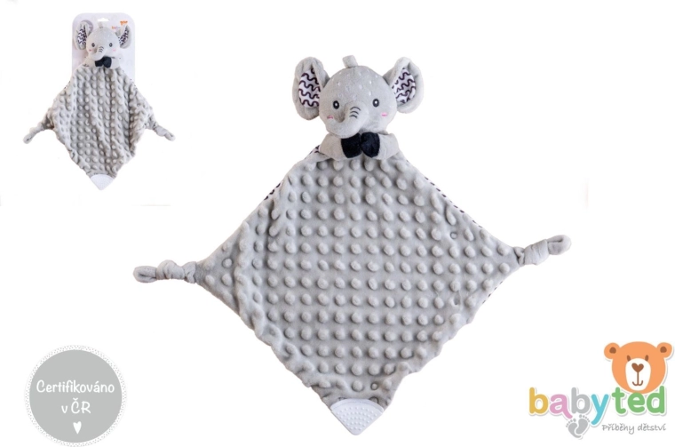 Pružite svojoj bebi umirujućeg pratitelja za svaki dan. Slon duduš BABYTED izrađen je od iznimno ugodnog minkyja s izraženom 3D teksturom koja potiče dodir i poziva na maženje. Zahvaljujući laganoj izradi i čvorovima na rubovima lako ga hvataju i najmanje ručice.