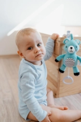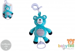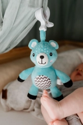 Ova viseća plišana medo osmišljena je za mirno uspavljivanje i zabavu u pokretu. Nakon povlačenja za ušicu pokreće se melodična uspavanka koja pomaže bebi da se umiri. Zahvaljujući praktičnoj kopči igračku lako pričvrstite na krevetić, kolica, autosjedalicu ili igraću prečku.