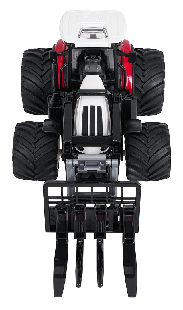 Zabavni RC traktor u mjerilu 1:24 s ručno upravljanim prednjim utovarivačem razveselit će male farmere od 3 godine. Nudi vožnju u svim smjerovima, 2,4 GHz upravljanje bez smetnji, svjetlosne efekte (prednja svjetla i pozadinsko osvjetljenje kabine) te praktičan demo način. Velike gumene gume osiguravaju dobru prianjivost i stabilnost, dok funkcija automatskog isključivanja štedi bateriju. U pakiranju se nalazi punjiva baterija 3,7 V 500 mAh i USB kabel.