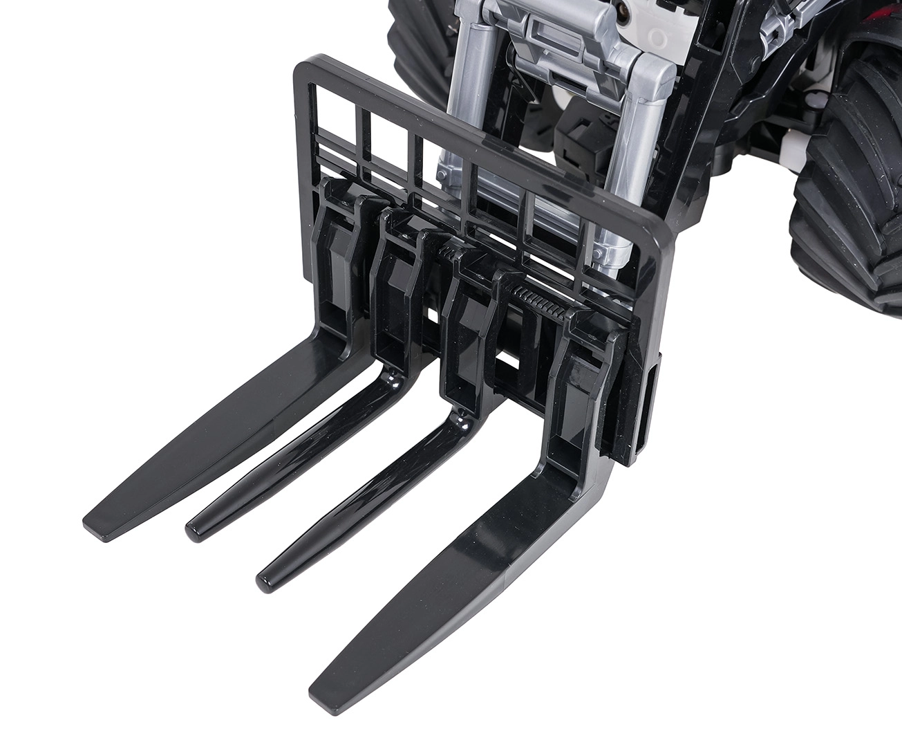 Prednji utovarivač se može ručno podizati, spuštati i naginjati, pa djeca mogu skupljati i prenositi manje predmete. Velike gumene gume osiguravaju dobru trakciju na raznim podlogama. Praktična je i funkcija automatskog isključivanja pri duljoj neaktivnosti. Traktor napaja priložena baterija 3,7 V 500 mAh, punjenje se obavlja putem USB kabela; upravljač zahtijeva 2× AAA (nisu uključene).