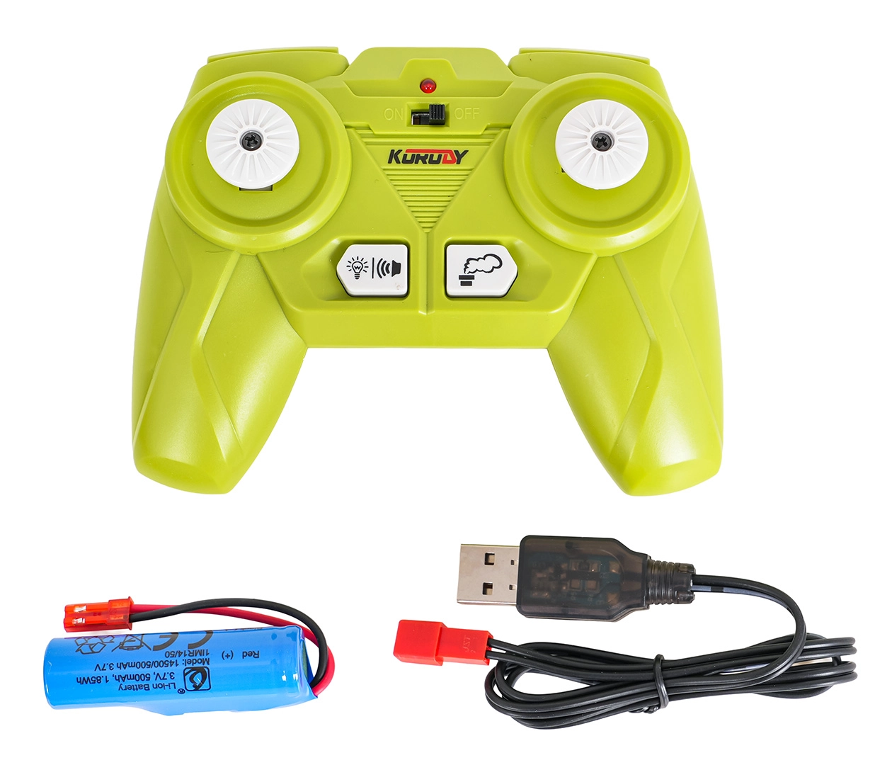 - Kombajn s hederom, daljinski upravljač 2,4 GHz, akumulator 3,7 V, USB kabel za punjenje, pipeta za vodu