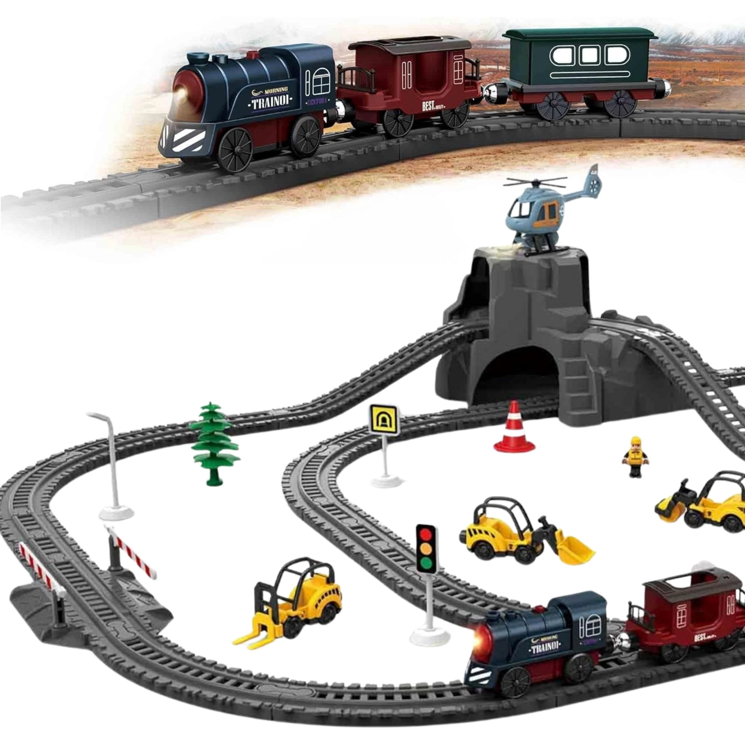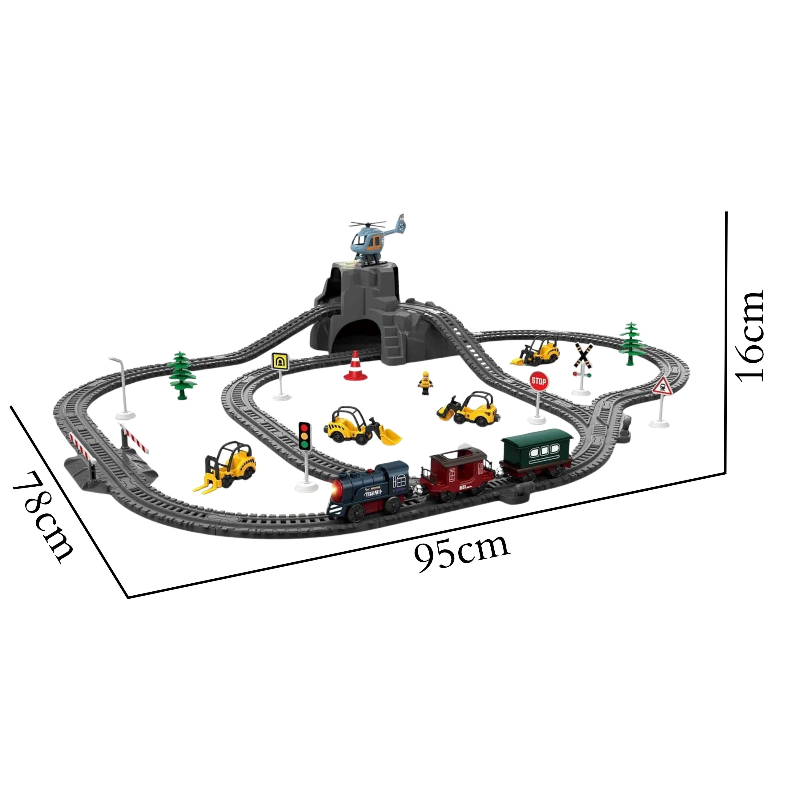 Tunelski brežuljak, prometni znakovi, rampe, stabla, figurice i građevinska vozila dodaju igri uzbuđenje i atmosferu prave željeznice.