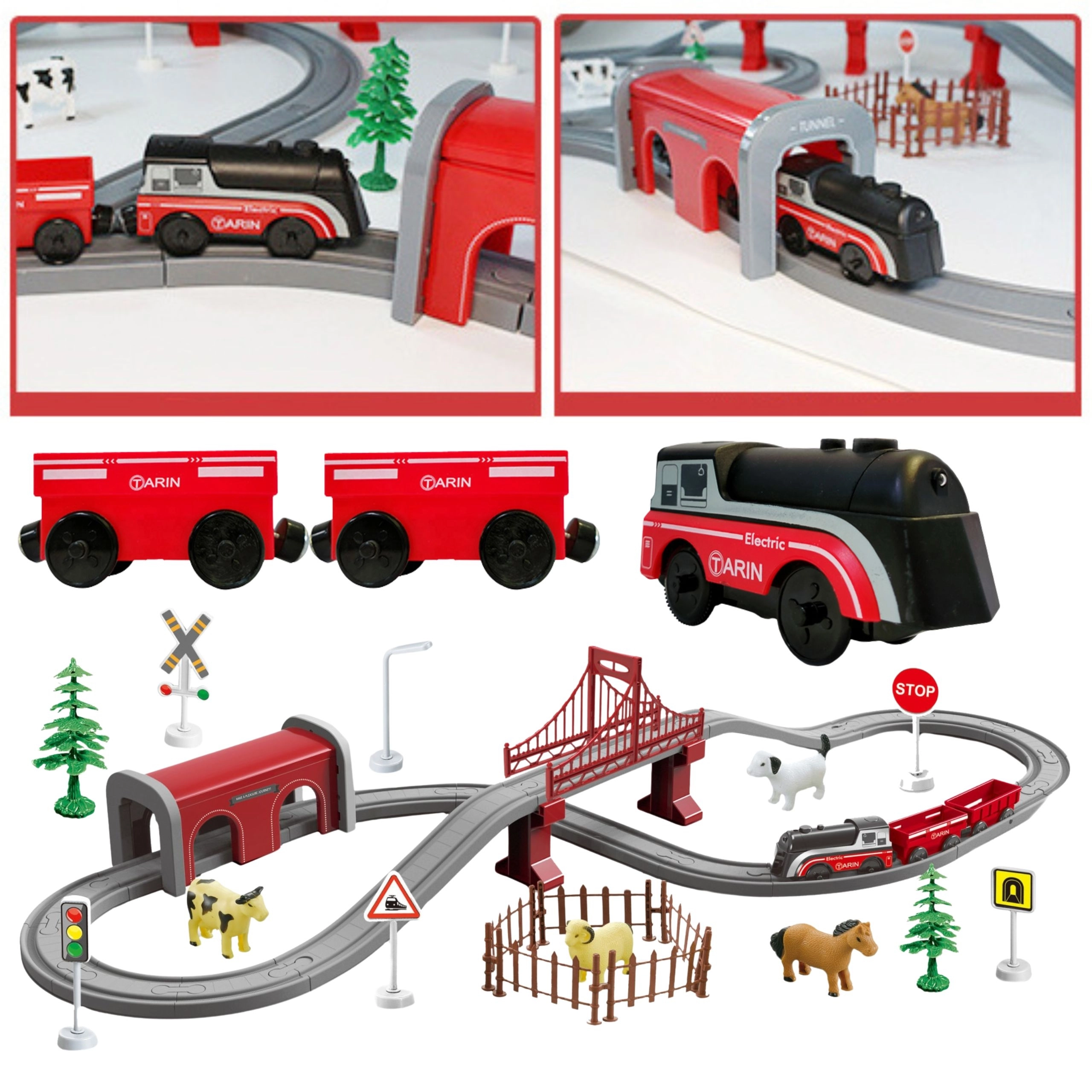 Lokomotiva na 1× AAA bateriju pokreće vlak po tračnicama i daje igri autentičnost. Djeca uživaju u glatkoj vožnji preko mosta i kroz tunel.
