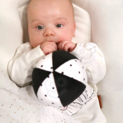 Mekani plišani zeko i lagana kontrastna lopta potiču hvatanje i stiskanje, razvijaju hvat i pružaju bebi osjećaj sigurnosti.