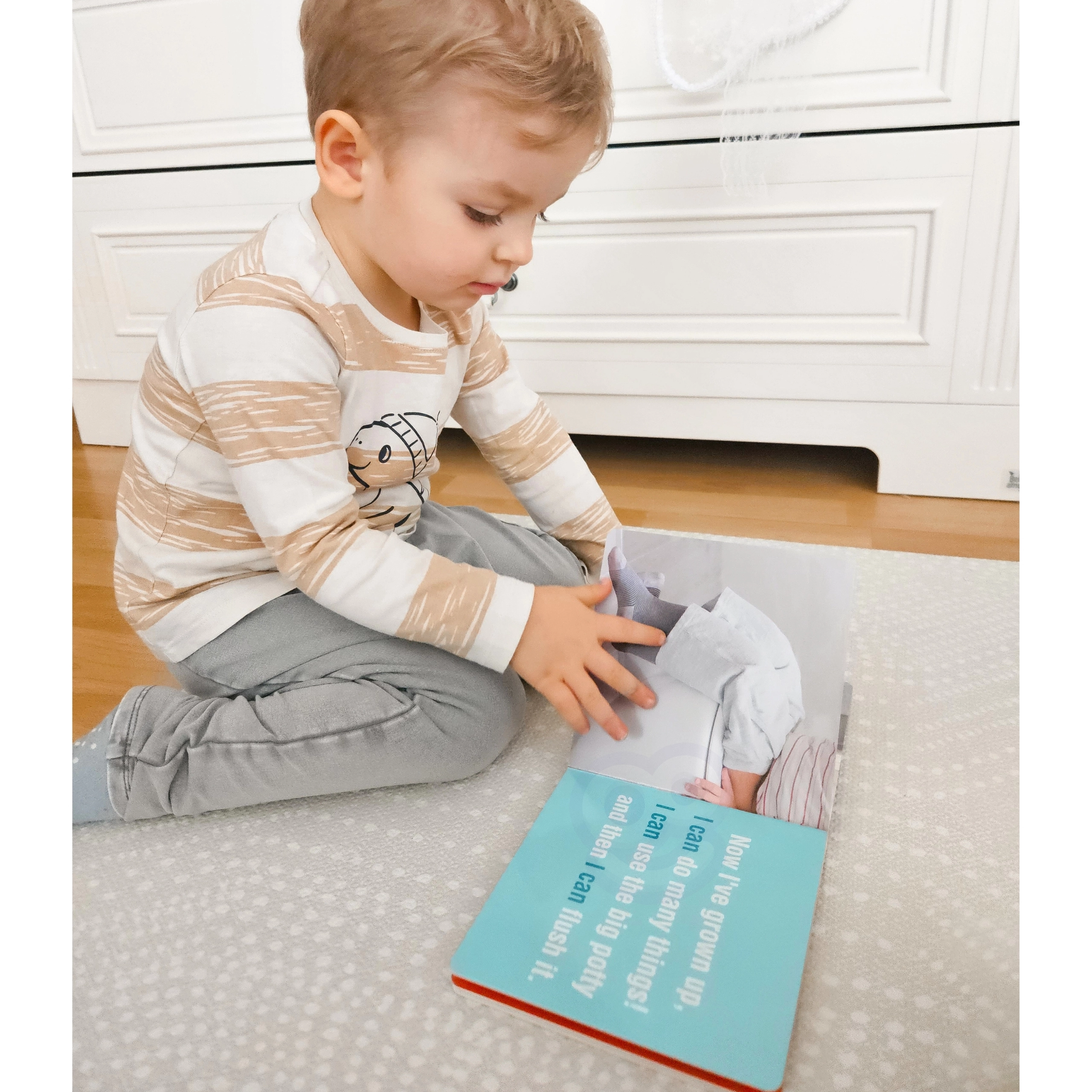Dio seta su drvena sortirna kocka i spremnik, balansni „kamenčići” za slaganje tornjeva, životinjske figurice i kartice za uparivanje, šareni geometrijski dijelovi za slaganje te izdržljiva leporelo knjižica. Roditelji će cijeniti priloženi vodič s idejama za igre. Cijeli set potiče dijete na samostalno otkrivanje kroz smislenu igru.