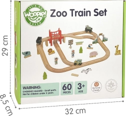 Drvena željeznička pruga Woopie Green donosi čar zoo vrta i sate maštovite igre u dječju sobu. Vlakić s vagonima spojenim magnetima prolazi pokraj žirafe, slona, lava i zebri, prelazi preko uzdignutog mosta i ulazi kroz ulazna vrata. Zahvaljujući raznolikim tračnicama djeca lako slažu prugu točno prema svojoj mašti.