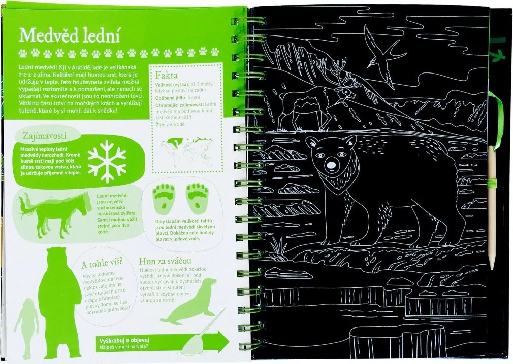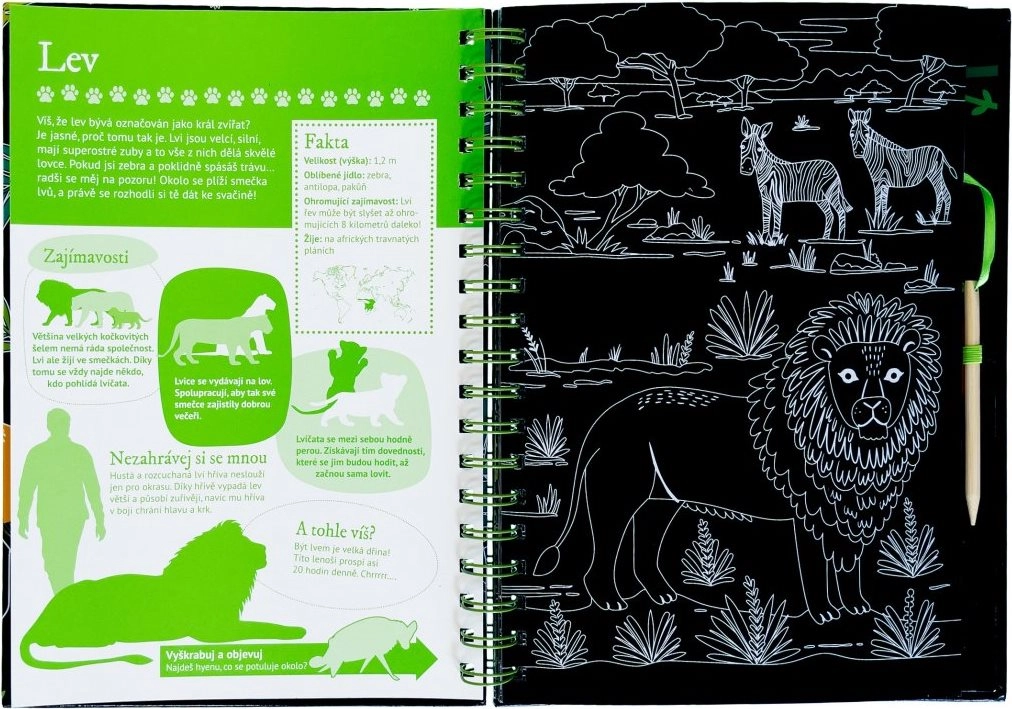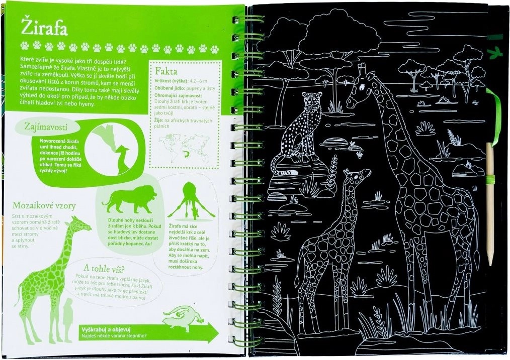 Krenite u scratch-art pustolovinu i otkrivajte životinje i okoliš u kojem žive. Knjiga potiče kreativnost, finu motoriku, logičko razmišljanje i prirodnu znatiželju djece.