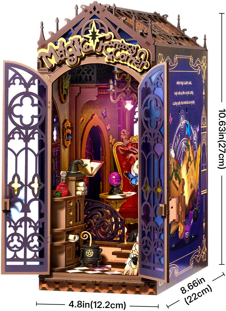 Otkrijte čarobni book nook koji pretvara vašu knjižnicu u tajanstveni kabinet čarolija. Ovaj DIY set brenda Rolife nudi 185 dijelova, LED osvjetljenje i mnoštvo detalja – od spiralnog stubišta preko lučnih prozora pa sve do kotlića i polica sa svicima. Sjajan projekt za kreativne duše, a po završetku dobit ćete impresivnu dekoraciju za policu ili stol.