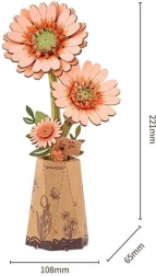 Složite elegantnu narančastu gerberu od precizno laserski izrezanih drvenih dijelova. Model potiče finu motoriku, prostorno razmišljanje i strpljenje. Dijelovi su označeni brojevima, bez potrebe za ljepilom i nakon spajanja čvrsto drže. U paketu je ilustrirani priručnik; sastavljanje traje oko 30 minuta.