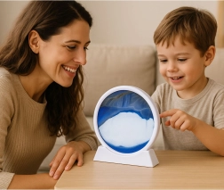 Promatrajte kako plavi i bijeli pijesak neprestano stvaraju nove pejzaže. Idealno za opuštanje, meditaciju i kratke pauze tijekom rada.