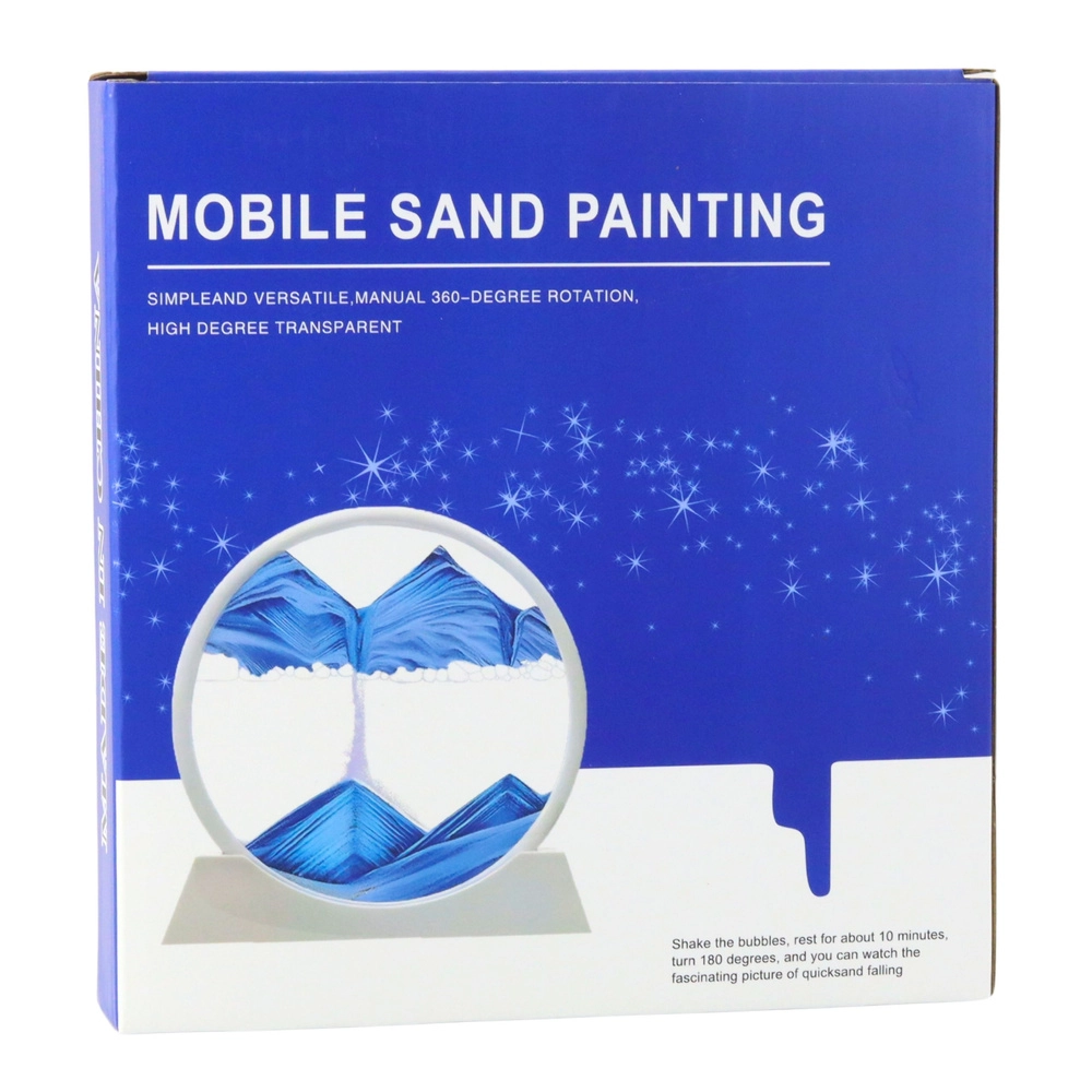 Elegantna dekoracija s efektom 3D pokretnog pijeska u bijelom kružnom okviru donosi umirujuće, antistres iskustvo. Pri okretanju za 360° pijesak polako pada i stvara jedinstvene pejzaže – planine, dine i valove. Idealno za dnevni boravak, ured, spavaću sobu i radnu sobu.