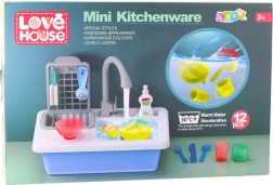 Zabavni kuhinjski set za male kuhare s električnom cirkulacijom vode i dodacima koji mijenjaju boju u toploj vodi (30 °C+). Djeca mogu stvarno puniti i prelijevati vodu pomoću funkcionalne slavine, razvijati finu motoriku, maštu i učiti kućanske vještine. U kompletu je 12 dijelova dodatne opreme sa zaobljenim oblicima za sigurnu i privlačnu igru.