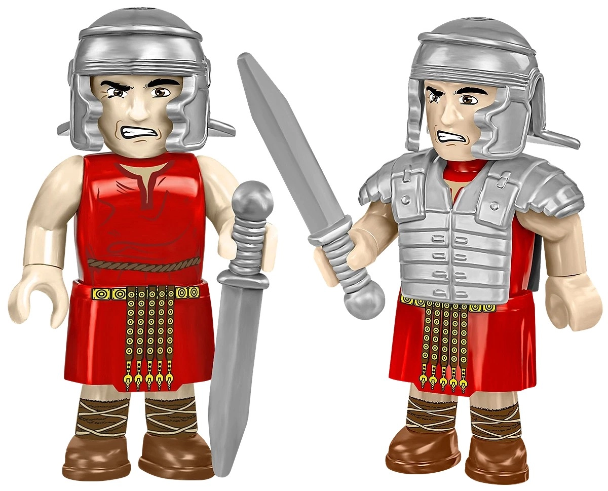 Neka legionar sa štitom scutum i mačem gladius brani logor od naoružanih ratnika. Odvojivi dodaci i otisci potiču raznolikost u igri.