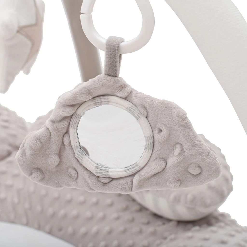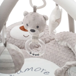 Sastavni su dio omiljeni elementi: zrcalce, šuškavi dijelovi, zviždaljka, mekana grizalica, zvončić i igračka s ugrađenim reproduktorom melodije. Podloga je odlična kod kuće i na putu, lako se prenosi i pruža mekano podložno mjesto za svakodnevnu igru.