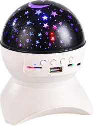 Ovaj elegantni bijeli projektor zvijezda pretvara dječju sobu, spavaću sobu i dnevni boravak u zonu za opuštanje. Zahvaljujući LED projekciji zvijezda i mjeseca stvara umirujuće okruženje za uspavljivanje, čitanje ili večernji odmor. Ugrađeni Bluetooth zvučnik omogućuje reprodukciju omiljenih uspavanki, ambijentalne glazbe ili audio bajki izravno s telefona, USB diska ili microSD kartice.